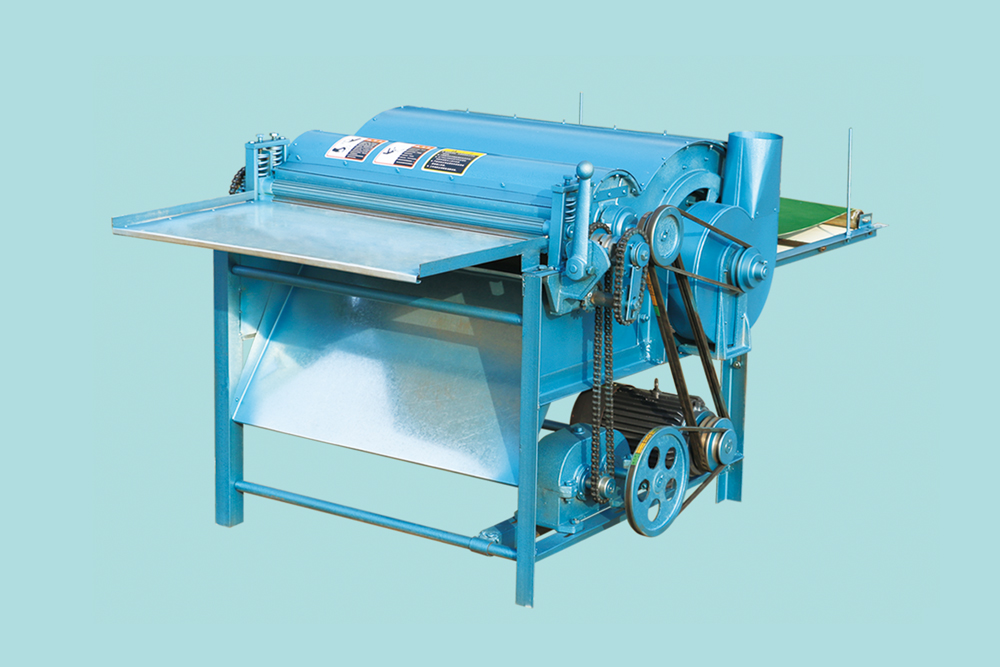 本機適用于舊棉胎、短絨、舊羊毛衫、化纖等開松、除塵、成卷。(一般開松2-3遍才能達到疏松效果)