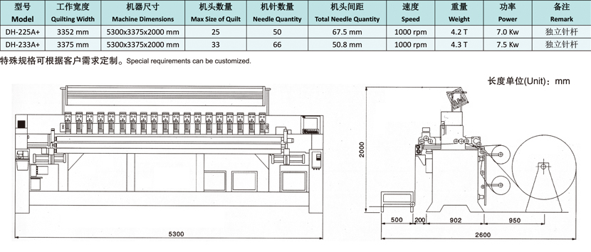 本設(shè)備是一種全新的機種,采用了繡花機和絎縫的技術(shù),性能集絎縫
