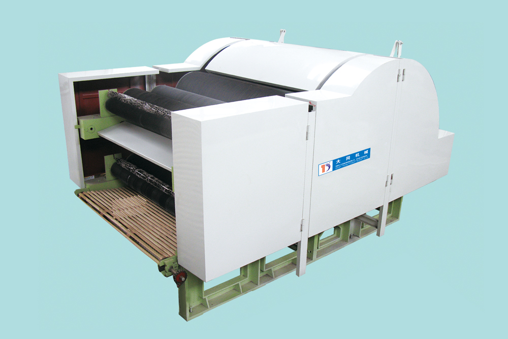 適應1.5~20Dx38~65mm人造纖維梳理。單錫林高速梳理,雙道夫出棉,產(chǎn)量高;采用剝毛羅拉剝棉;喂棉羅拉變頻傳動。