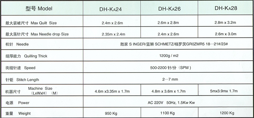 | DH-KA系列款是去年推出的目前性價(jià)比較高的一款絎縫機(jī)!上下機(jī)頭、分別獨(dú)立伺服電機(jī)傳動(dòng)無(wú)軸、高速、無(wú)澡音、運(yùn)營(yíng)平穩(wěn)、絎縫線跡在ED燈條下光照清晰、機(jī)電一體組合方便機(jī)器長(zhǎng)途運(yùn)輸安全和用戶自行、日后調(diào)整搬運(yùn)安裝。工控電腦主機(jī)、等高性能電器配套、,使用極為方便穩(wěn)定、花形全功能、線跡精準(zhǔn)!機(jī)械精度高,斷線故障少,使用存本低。 |